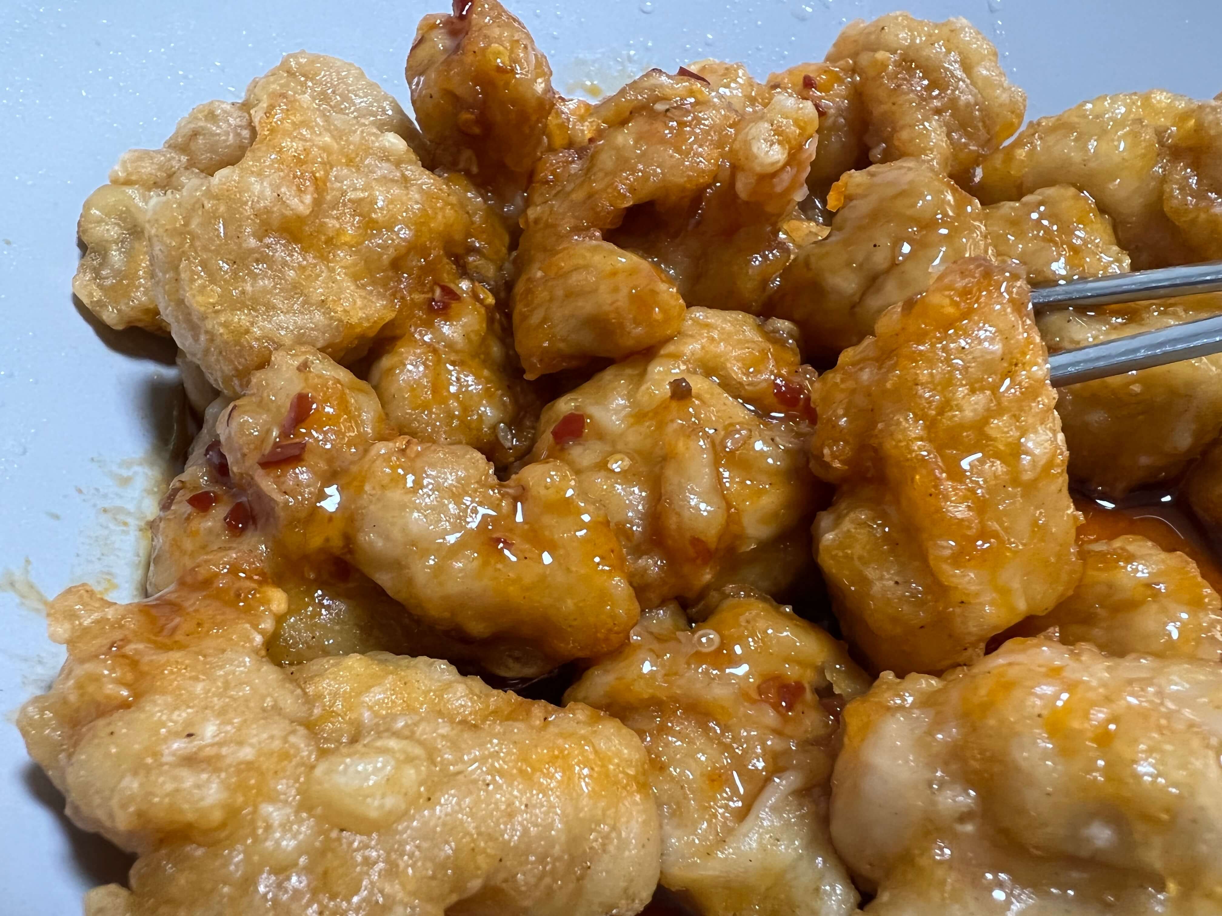 소스를 넣은 뒤 사진입니다. 비주얼은 괜찮습니다. 소스 중간중간 고추가 있지만 전혀 맵지 않습니다. 애들도 먹을 수 있을 정도입니다. 닭은 매우 부드럽습니다. 전자레인지 돌리면 뻑뻑해지는데 이놈은 아주 부드러워 놀랬습니다. 그리고 닭에서 생강향, 후추든 향신료의 냄새는 나지 않았습니다.