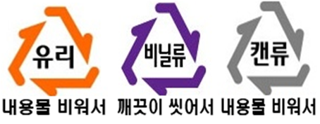 유리: 내용물을 모두 비운 뒤 배출한다. 특히 소주병이나 맥주병처럼 재활용이 가능한 병은 내용물을 비운 뒤 뚜껑을 닫아서 배출해야 한다.